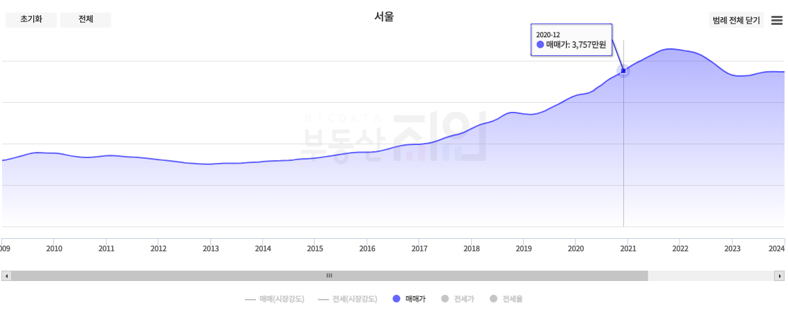현재 서울, 수도권 기준으로 매매가는 2020년도 말 수준으로 회귀한 상태다. 누군가는 지금도 비싸다, 더 떨어져야 한다고 말하지만 지금은 상승장과는 다르게 매수자 우위 시장이기 때문에 가격 절충을 잘한다면 충분히 안전 마진을 확보할 수 있는 시기라고 생각한다.