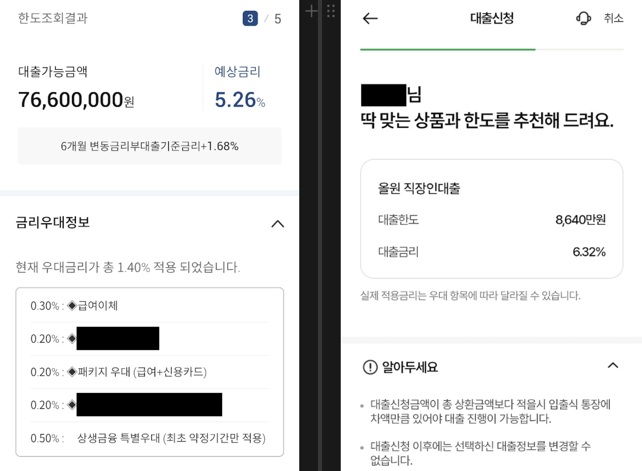 4. 은행 앱에서 비대면으로 대출을 받을 것이라면 그 다음주까지는 한도 조회 같은 거 해보지 말고 기다렸다가 하자.